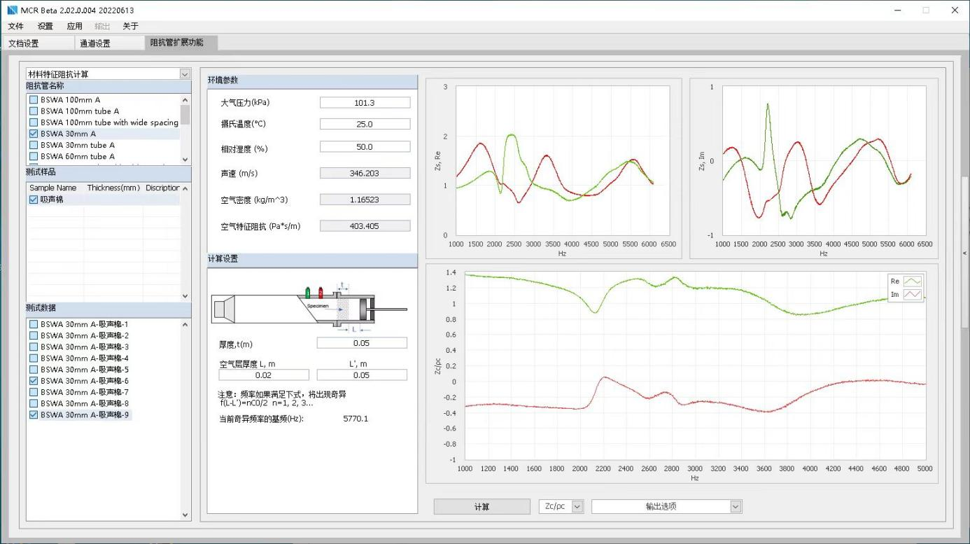 通過不同后空腔距離的表面聲阻抗測試數(shù)據(jù)計算材料特征阻抗